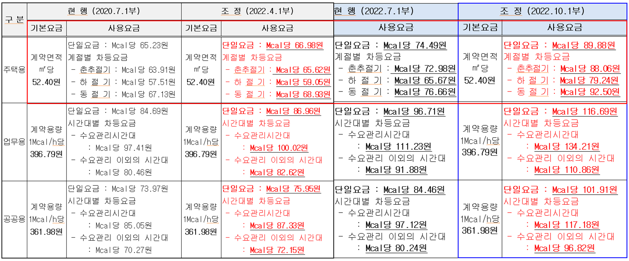 총 3번 인상해 1 Mcal당 89.88원까지 올랐다고 한다. 3월 대비 총 38% 인상이다.